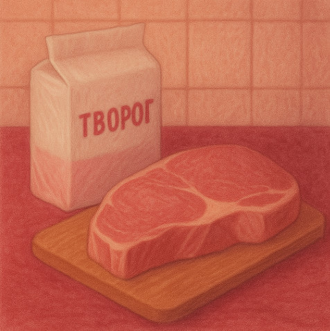 Два раза творог и один раз мясо