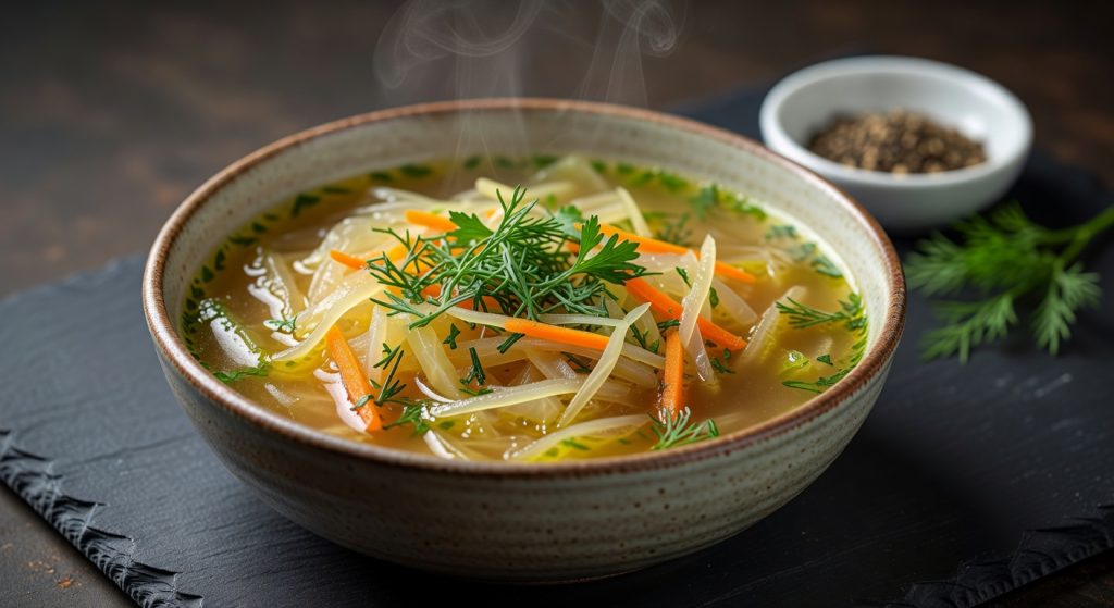 Постные щи из свежей капусты с зеленью