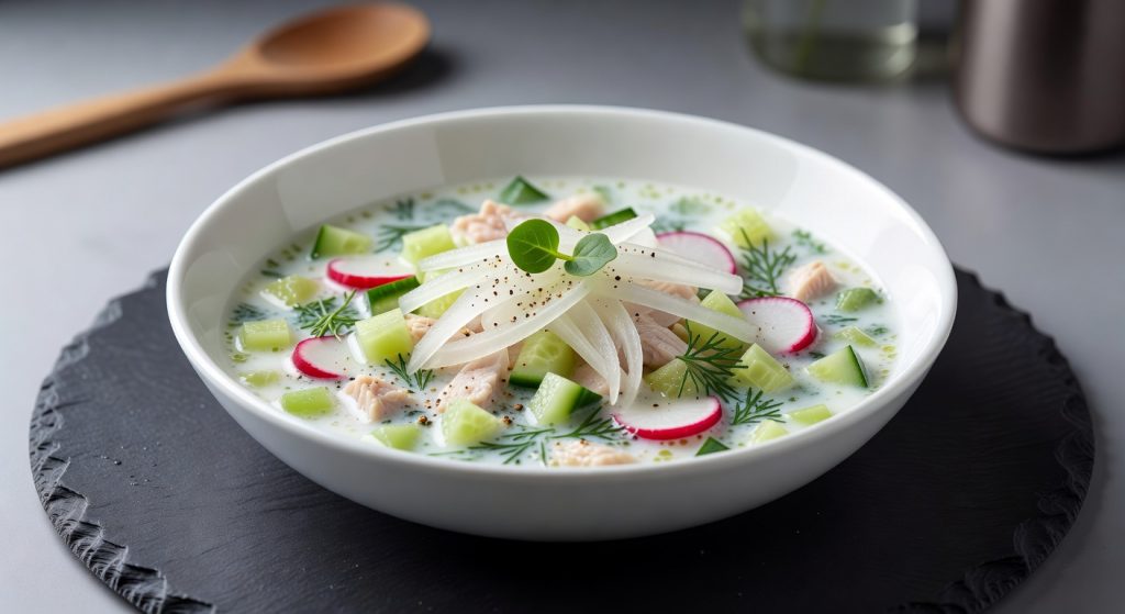 Окрошка ПП с индейкой и редисом