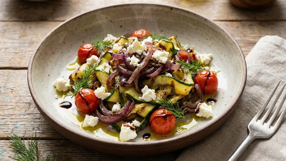 Тёплый салат из кабачков и лука при ХПН: Рецепт в Мультиварке (№1)