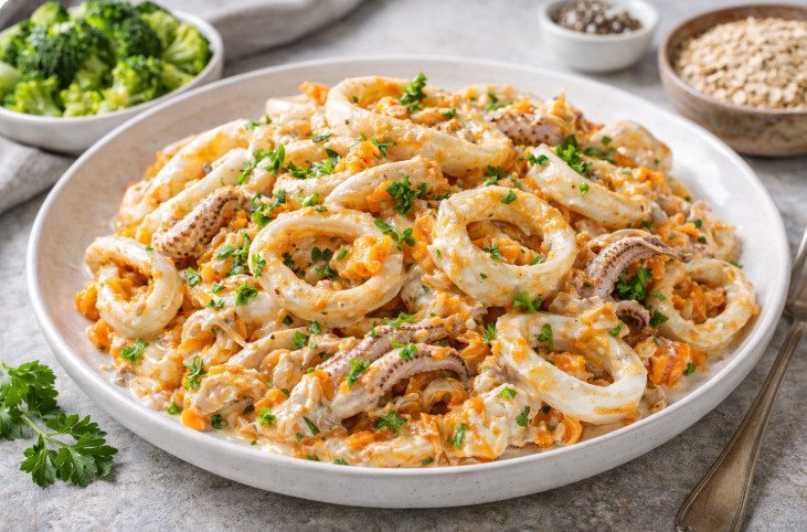 Жареные кальмары со сметаной и морковью: Морской праздник (№1)