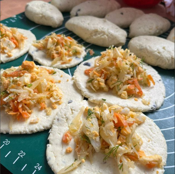 - Ингредиенты: творог, мука, яйцо, капуста.